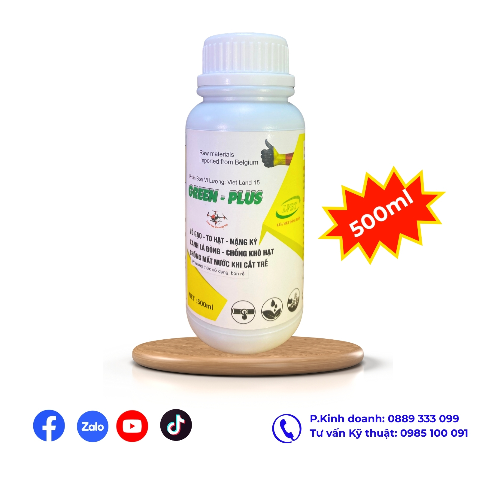 GREEN PLUS ✅Giúp lúa chắc hạt, to hạt, nặng ký ✅Giúp lúa không mất nước khi cắt trễ ✅Xanh lá đòng, cải thiện màu xanh cho cây lúa