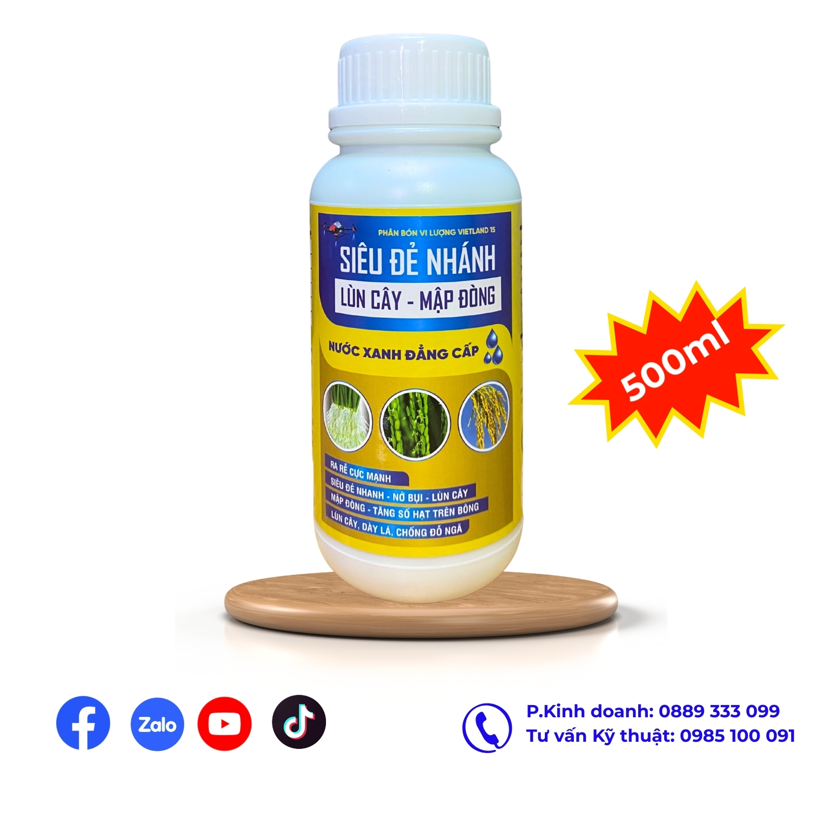 ✅Ra rễ cực mạnh ✅Siêu đẻ nhánh, nở bụi, lùn cây mập đòng ✅Tăng số hạt trên bông, dày lá, chống đổ ngã ✅Phục hồi rễ bị tác hại bởi ấu trùng ve sầu, tuyến trùng hại rễ, thối đen đầu rễ. ✅Khử chua, giải độc phèn ✅Phòng chống vàng lá do thiếu lân ✅Tăng khả năng ra rễ, đâm chồi, đẻ nhánh ✅Tạo tim đèn, mập, đồng to, tăng số hạt, số nhánh trên bông, tăng sức đề kháng ✅Cây trồng chịu đựng các điều kiện thời tiết như nắng nóng, khô hạn, ngập úng, sương muối