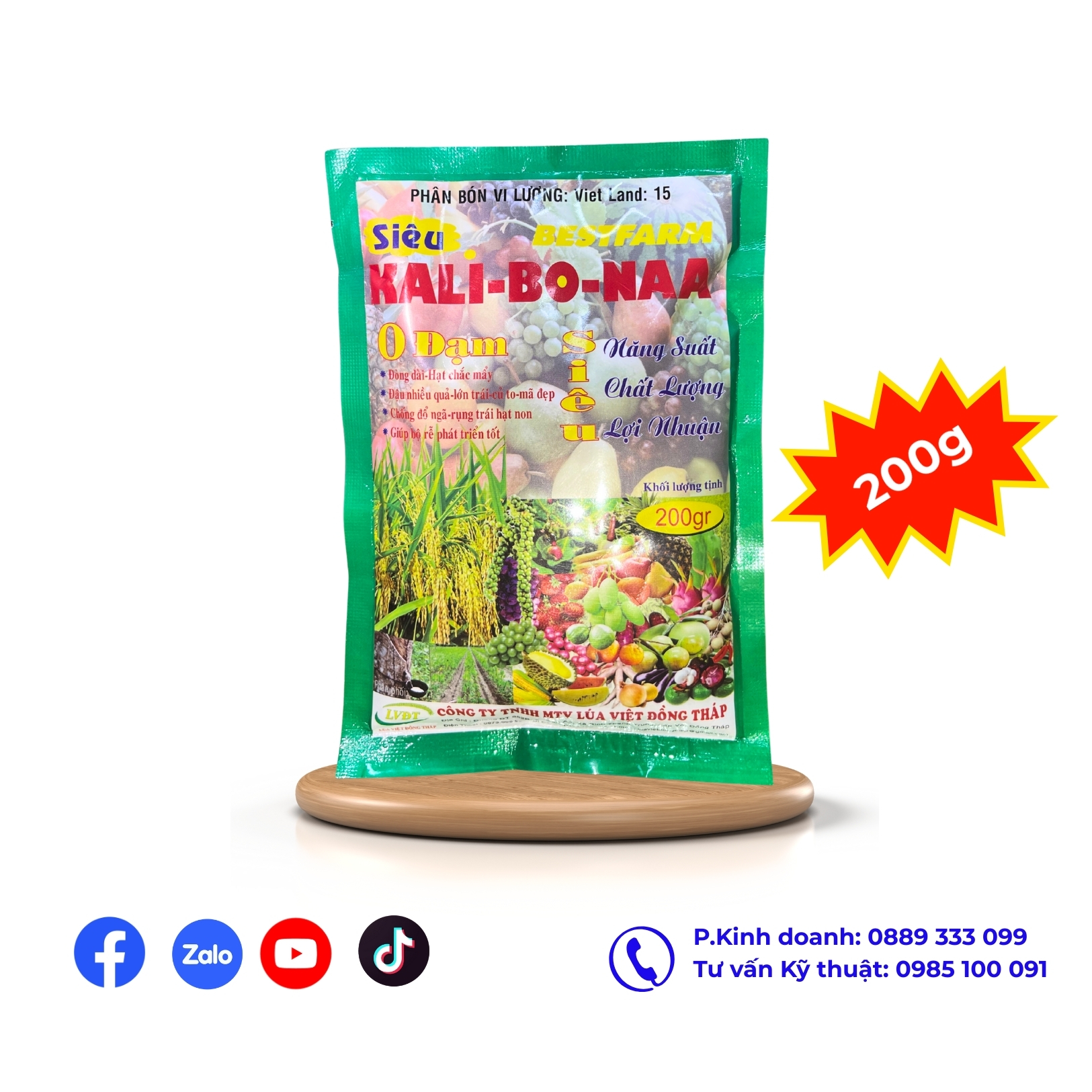 Ngoài ra, SIÊU KALI BO-NAA còn được bổ sung nhiều chất kích thích sinh trưởng khác và vitamin cần thiết cho cây trồng.