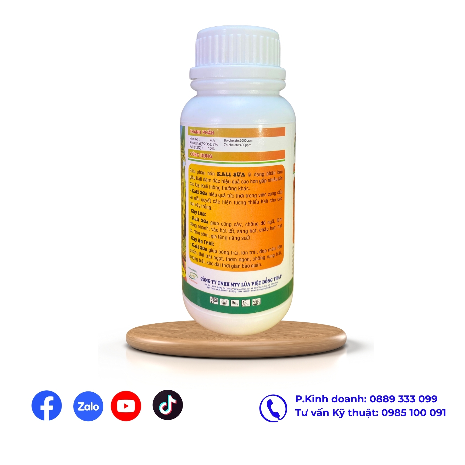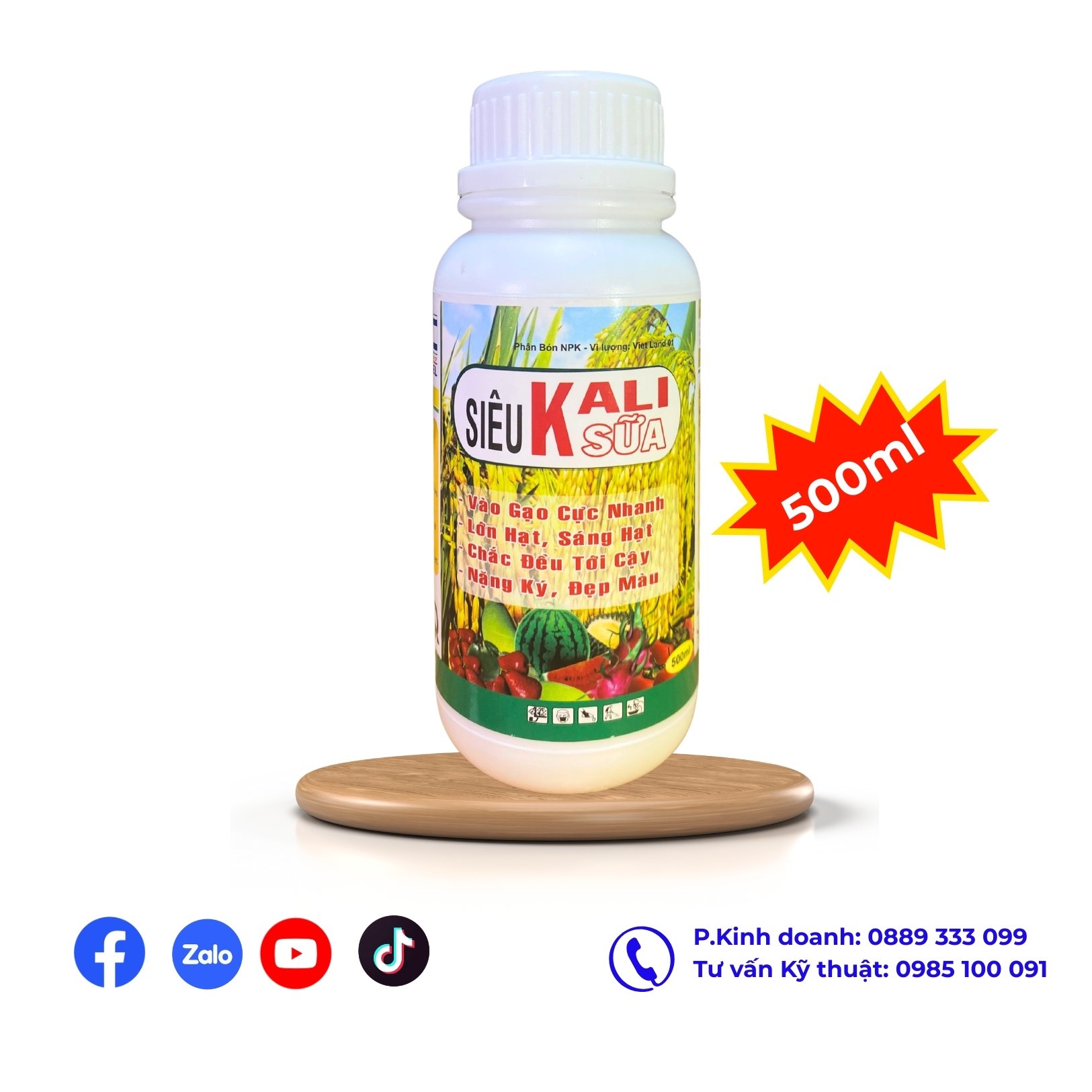 Siêu phân bón Kali Sữa là dạng phân bón giàu kali đậm đặc hiệu quả cao hơn gấp nhiều lần các loại kali thông thường khác. Hiệu quả tức thì trong việc cung cấp và giải quyết các hiện tượng thiếu kali cho các loại cây trồng.